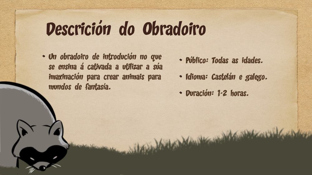 Un taller de introducción en que se enseña a los chavales a utilizar su imaginación para crear animales para mundos de fantasía.